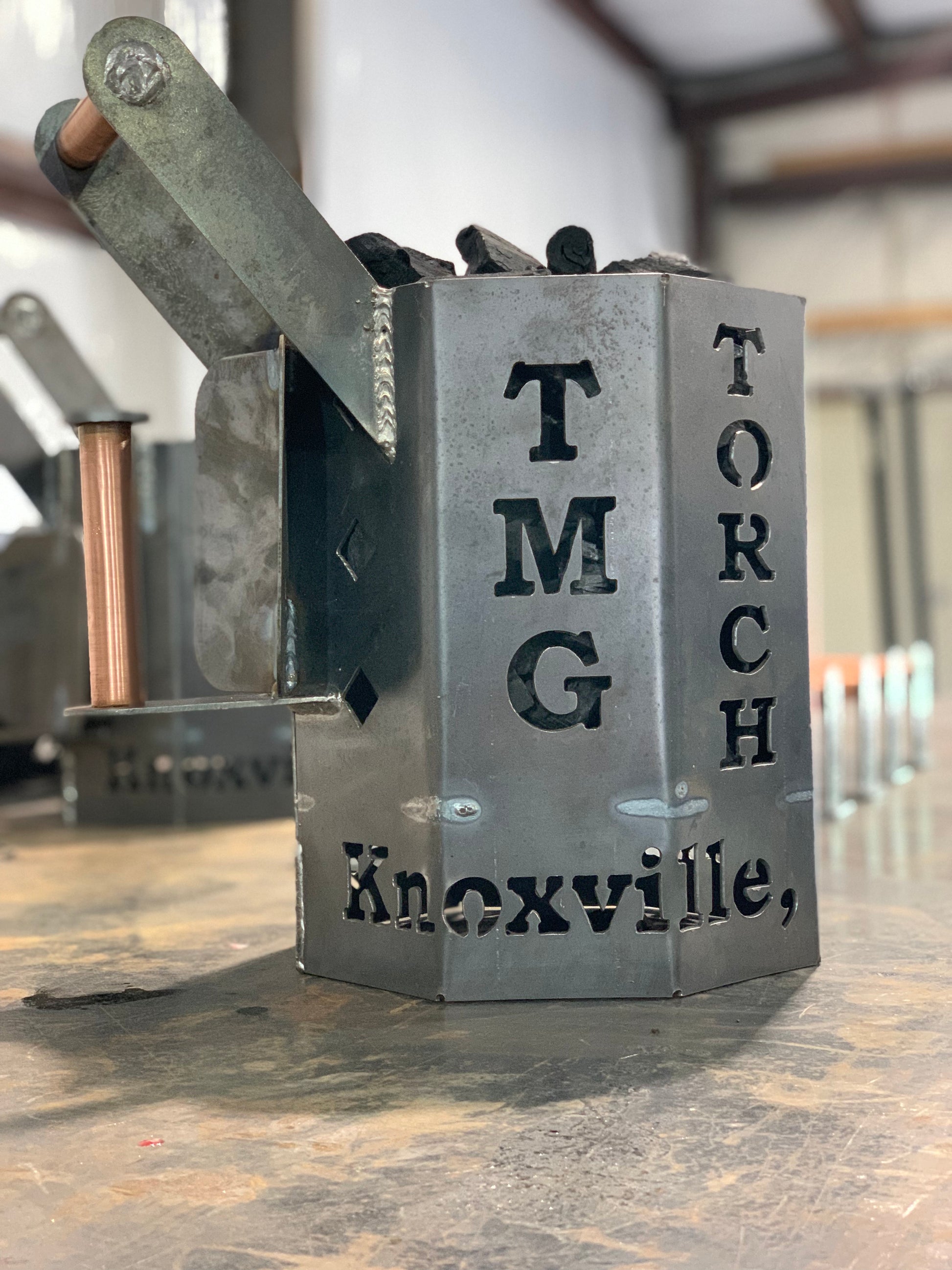 The TMG Torch Charcoal Chimney will be the last chimney you will have to buy as it come with our life time warranty. The chimney is 9” x 9” x 11.5”.